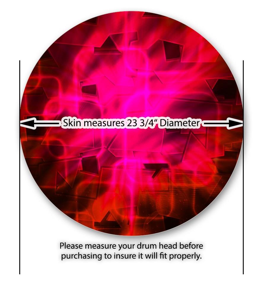 This design also available in other sizes. WraptorSkinz® skin wraps compatible with most kick drum heads. Printed using superb photo quality designs and vibrant colors printed with special fade resistant inks that last even in direct sun for years. WraptorSkinz are a composite three layer commercial grade materials vinyl. The bottom layer is a air release, grey block out removable adhesive that hides existing graphics on the drum head and is easily applied without air bubbles. The middle layer is a flexible vinyl printed with UV protected, fade resistant inks that deliver superb photo quality designs in vibrant colors. Finally, we bond a professional grade laminate over the entire skin adding a glossy protective finish.